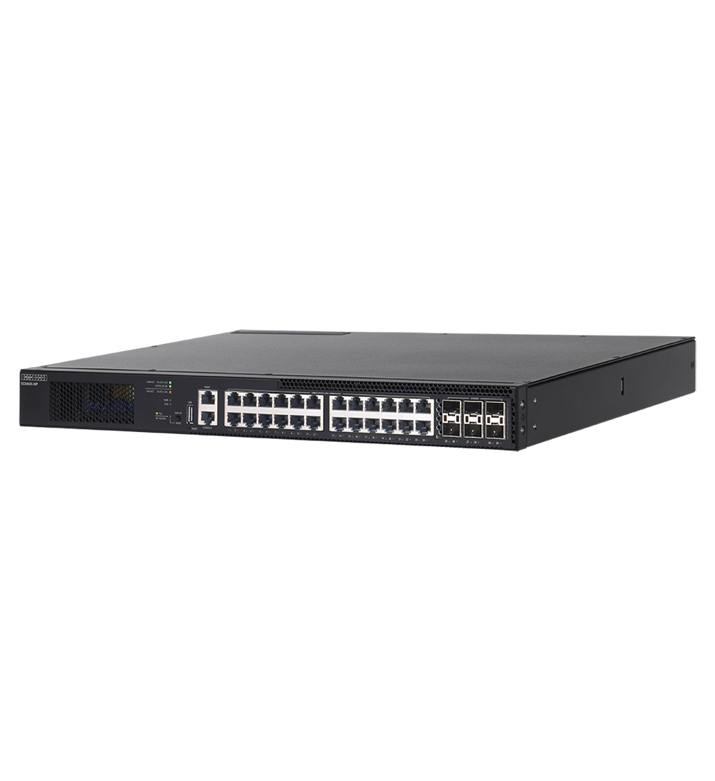 The Edgecore ECS4655-30T or ECS4655-30P switch is a Layer3 versatile 1G/2.5G multi-Gigabit Ethernet access/aggregation switch designed to meet the needs of Internet Service Providers (ISPs) and Multiple System Operators (MSOs). With six 1G/10G/25G SFP28 uplinks, the device provides high-speed connectivity for a range of applications. The switch is ideal for delivering third-party services to home users with a maximum bandwidth of 2.5 Gigabits per second (Gbps) to end devices, making it well-suited for cloud-edge access and connecting IoT and other devices in Enterprises and SMB deployments. Additionally, the ECS4655-30P variant offers Power-over-Ethernet (PoE) capabilities, delivering up to 90 Watts to power devices such as wireless access points, VoIP phones, surveillance cameras, POS, and IoT devices over Cat 5e UTP cable. Packed with advanced features for high availability, security, multicast control, and QoS, the ECS4655-30T/ECS4655-30P ensures reliable and efficient network operations while supporting the latest IPv6 management, security, and multicast control standards to accommodate the growth of IPv6 deployment.